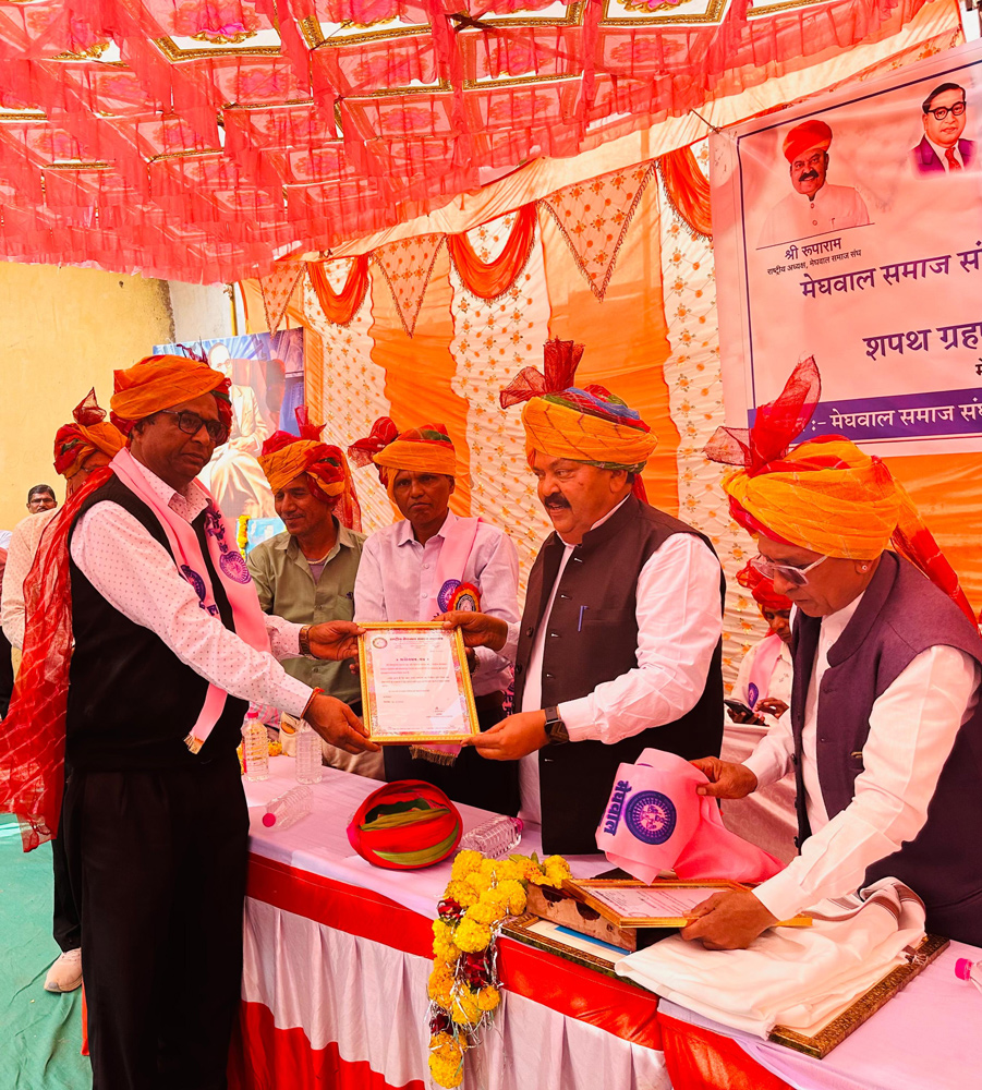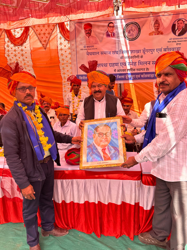 राष्ट्रीय मेघवाल समाज संघ ज़िला शाखा बांसवाड़ा और डूंगरपुर के जिला कार्यकारिणी के शपथ ग्रहण एवम् स्नेहमिलन कार्यक्रम समाज की गरिमामयी उपस्थिति में आयोजित हुआ। समाज के साथ विभिन्न मुद्दों, विचारों व पहलुओं पर सार्थक चर्चा की गई। यह संगठन समाज के शैक्षणिक, समाजिक, आर्थिक व राजनैतिक उत्थान के लिए तत्पर रहेगा। इस मौके पर समाज के जनप्रतिनिधि, अधिकारी- कर्मचारी व देवतुल्य समाज उपस्थित रहा। मैं आयोजकों एव पधारे सभी महानुभावों का सफल कार्यक्रम आयोजन के लिए बहुत बहुत आभार व धन्यवाद देता हूँ। जय मेघ। जय भारत