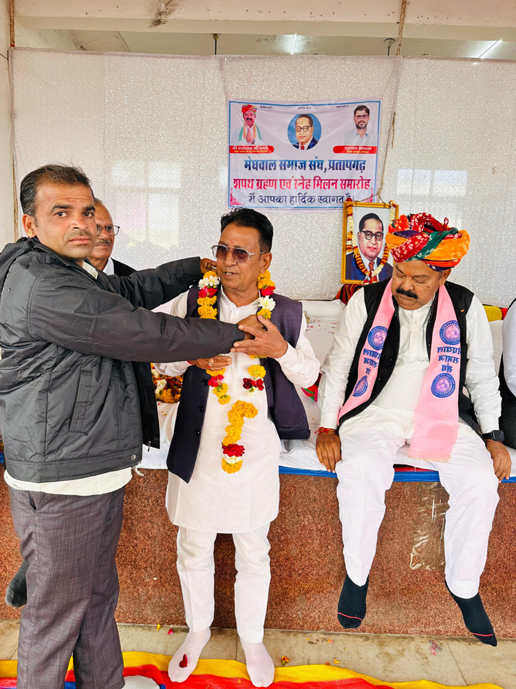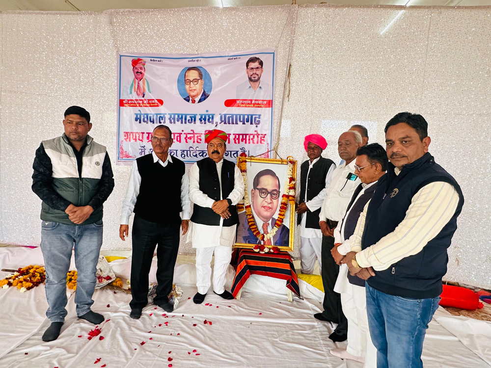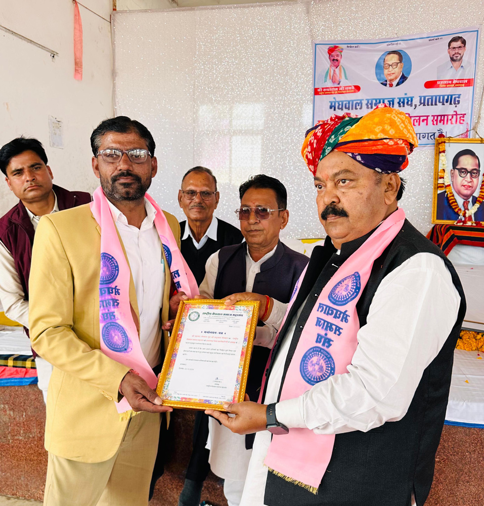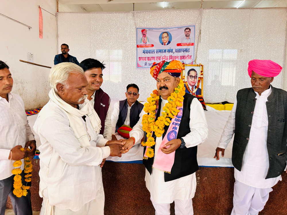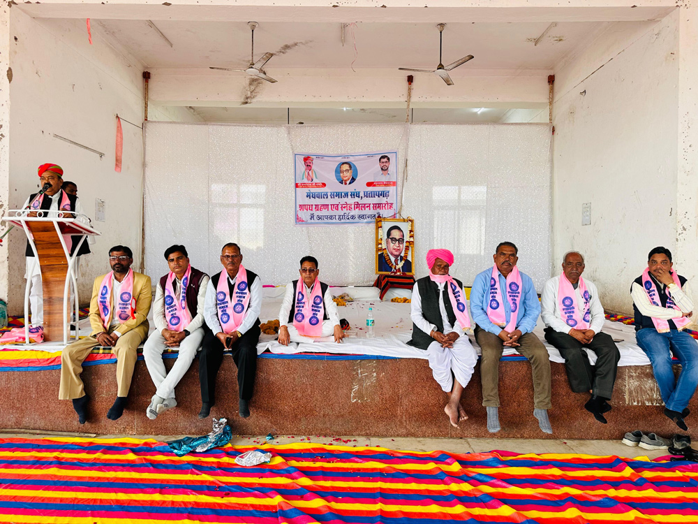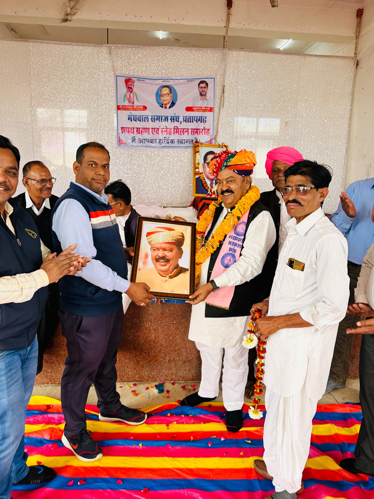 राष्ट्रीय मेघवाल समाज संघ ज़िला शाखा प्रतापगढ़ के जिला कार्यकारिणी के शपथ ग्रहण एवम् स्नेहमिलन कार्यक्रम समाज की गरिमामयी उपस्थिति में आयोजित हुआ। समाज के साथ विभिन्न मुद्दों, विचारों व पहलुओं पर सार्थक चर्चा की गई। यह संगठन समाज के शैक्षणिक, समाजिक, आर्थिक व राजनैतिक उत्थान के लिए तत्पर रहेगा। इस मौके पर समाज के जनप्रतिनिधि, अधिकारी- कर्मचारी व देवतुल्य समाज उपस्थित रहा। मैं आयोजकों एव पधारे सभी महानुभावों का सफल कार्यक्रम आयोजन के लिए बहुत बहुत आभार व धन्यवाद देता हूँ। जय मेघ। जय भारत